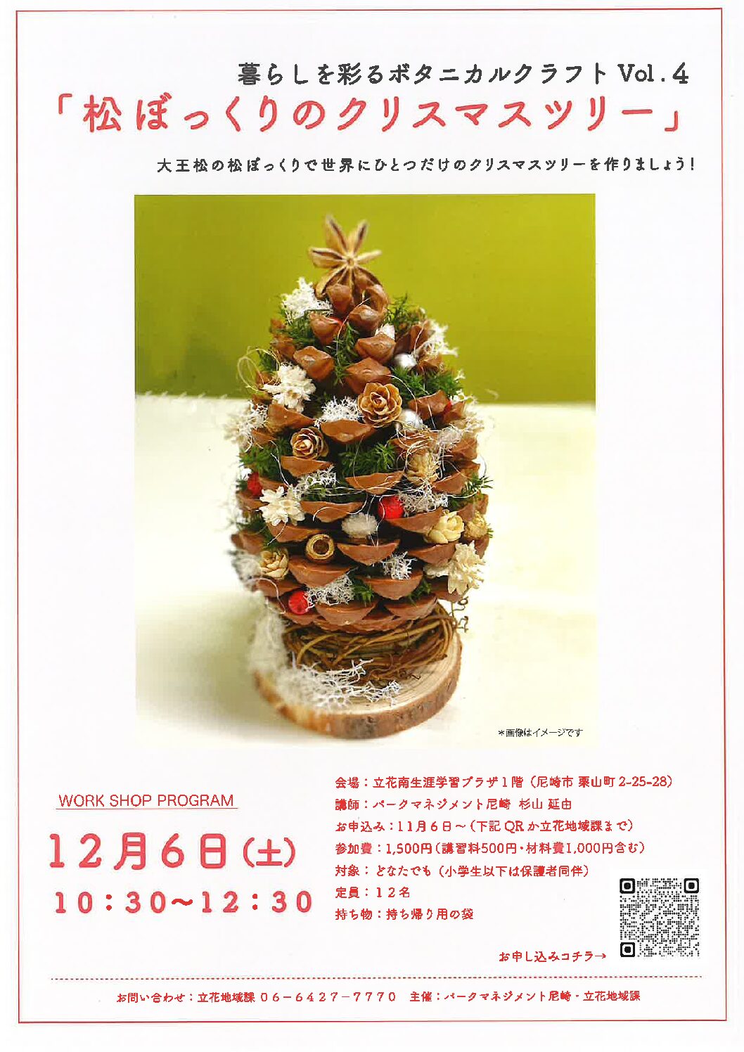 12月6日(土)暮らしを彩るボタニカルクラフトVol.4 「松ぼっくりのクリスマスツリー」ワークショップを立花南生涯プラザで開催しました。