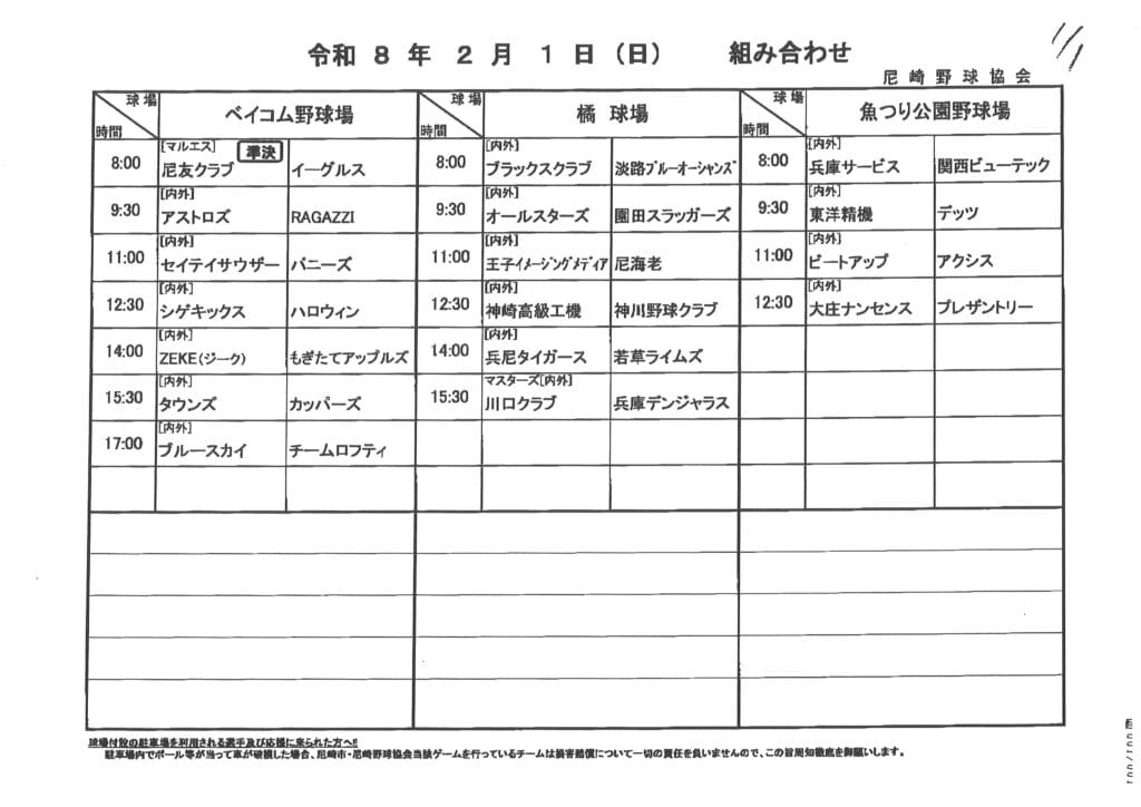 橘公園 西向島公園 猪名川公園 魚つり公園